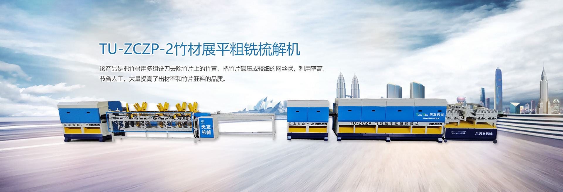 本廠生產(chǎn)的“天友”牌竹木兩大系列機(jī)械產(chǎn)品,品種齊全,包括(竹木機(jī)械、重竹設(shè)備、竹筷成套機(jī)械、牙簽成套機(jī)械、刨篾機(jī)、包裝機(jī)、竹地板成套設(shè)備、竹涼席成套設(shè)備、砂光機(jī)、破竹機(jī)、拉絲機(jī)、精刨機(jī)、帶節(jié)雙生筷、天削筷機(jī)械等) ,結(jié)構(gòu)新穎,質(zhì)量上乘,以完善的售后服務(wù)體系深受客戶的好評。